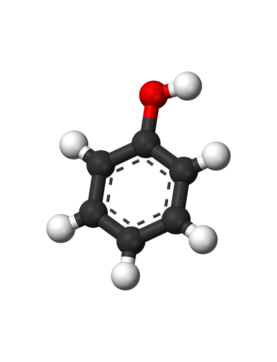 • الفينول مادة صلبة بلورية بيضاء متطايرة بالصيغة الجزيئية C6H5OH.